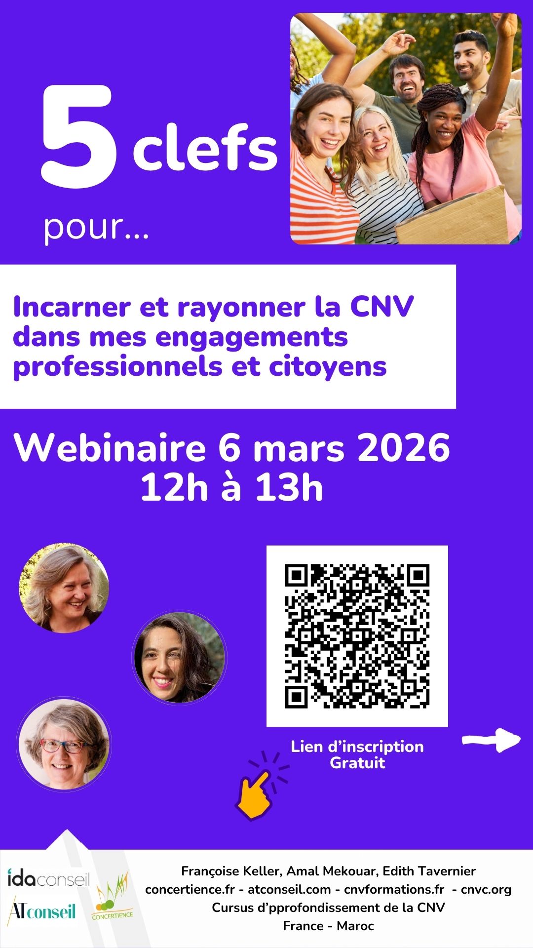 Webinaire gratuit, vendredi 6 mars 2026, 12h à 13hComment cultiver la qualité de relation que nous savourons en formation et dans nos groupes de prati...